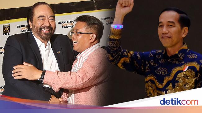 "Bapak Surya Paloh yang kalau kita lihat malam hari ini lebih cerah dari biasanya. Sehabis pertemuan beliau dengan Pak Sohibul Iman di PKS. Wajahnya cerah setelah beliau berdua berangkulan dengan Pak Sohibul Iman," kata Jokowi.